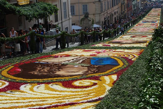 Preceded by a ‘mini Infiorata’, where children from local schools create the flower carpets, the Infiorata ends on the Monday of the third week of June, when children are allowed to destroy the colorful artworks, by playing on them.